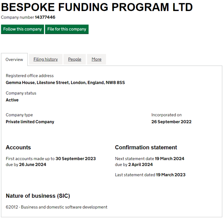 Bespoke Funding was founded on September 26, 2022 and is a proprietary firm. It offers traders the choice of three funding programs, including two two-step evaluation programs and a one-step evaluation program. With their headquarters located in London they provide traders with account sizes of up to $500,000 in balance and profit splits of up to 80%. Bespoke Funding has partnered with Eightcap as their broker. The firm's main office is located at Gemma House, Lilestone Street, London, England, NW8 8SS.