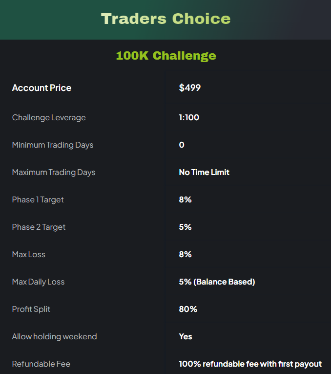Similarly, Rapid challenge accounts follow a two-phase evaluation structure, where traders must achieve profit targets of 8% in phase one and 5% in phase two. The trading objectives include a maximum daily loss of 5% and maximum loss of 8%. Successful participants can earn 80% profit splits and have the ability to scale their accounts.